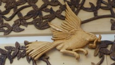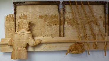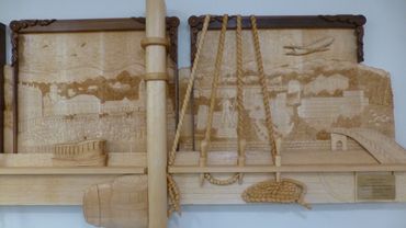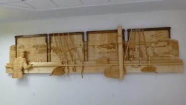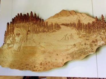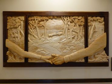 Large commissioned works designed for public buildings are usually 8-10 ft long and 3-4 ft high and are sized to fit the space where they will be located. If you are interested in commissioning a piece for your space please contact the artist for timeline and pricing details.